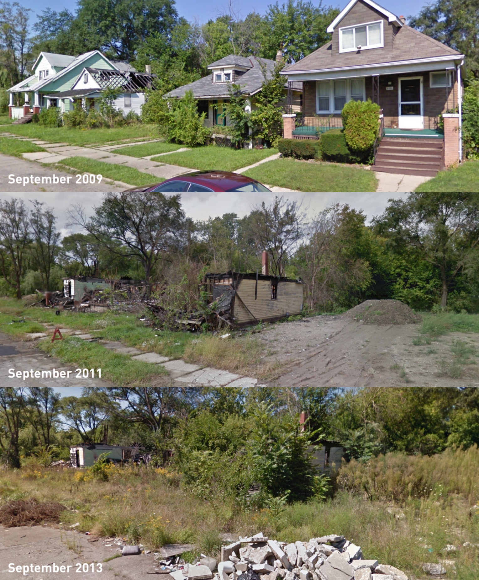 | Google Street View Time Machine Imagery of a block in Detroit from 2009 - 2013 |