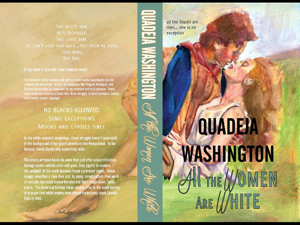 The historical-fiction romance sub-genre of mass market paperbacks was not created with me in mind. In fact, for companies like Penguin, harlequin, and Random House sales are dependent on my complete and total absence. These books erase any evidence of black skin, black struggle, or black presence. Leaving black female readers expunged.
